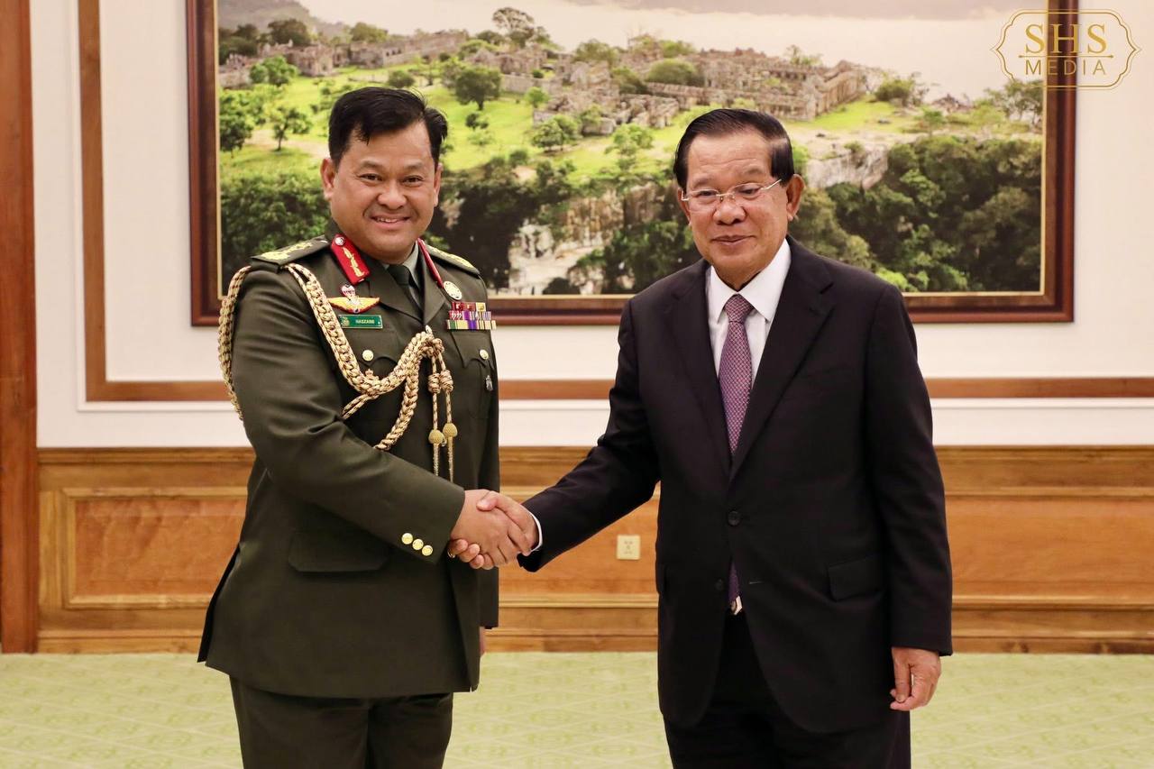 វិមានព្រឹទ្ធសភា,១៩ កញ្ញា ២០២៥៖ សម្ដេចតេជោ ហ៊ុន សែន ប្រមុខរដ្ឋស្ដីទីបានប្រាប់ ឯកឧត្តម ឧត្តមសេនីយ៍ទោ Dato Paduka Seri Haji Muhammad Haszaimi Bin Bol Hassan អគ្គមេបញ្ជាការកងទ័ពភូមិន្ទព្រុយណេថា សម្តេច ”ពេញចិត្តចំពោះទំនាក់ទំនាក់ទំនងរវាងកម្ពុជា និងព្រុយណេនាពេលបច្ចុប្បន្ន ហើយចង់ឃើញការពង្រីកសក្តានុពលក្នុងវិស័យយោធារវាងប្រទេសទាំងពីរថែមទៀត”។